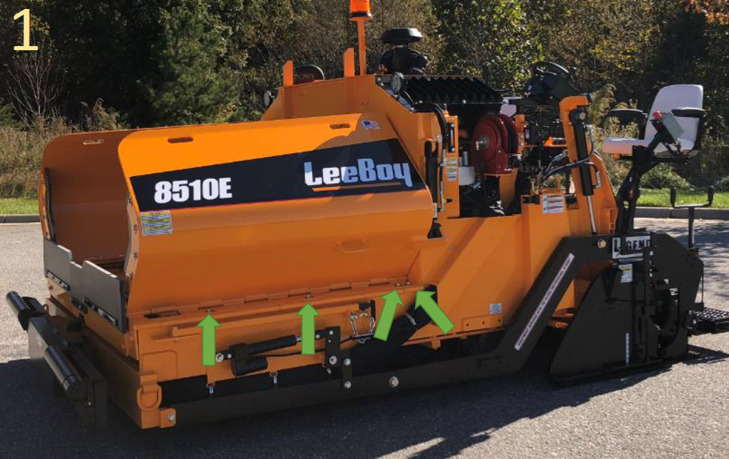 3. Warning-Going directly to tightening the bolts on the front of the paver without going through the following processes is the incorrect way to adjust the conveyor chain tension.