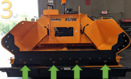 3. Warning-Going directly to tightening the bolts on the front of the paver without going through the following processes is the incorrect way to adjust the conveyor chain tension.