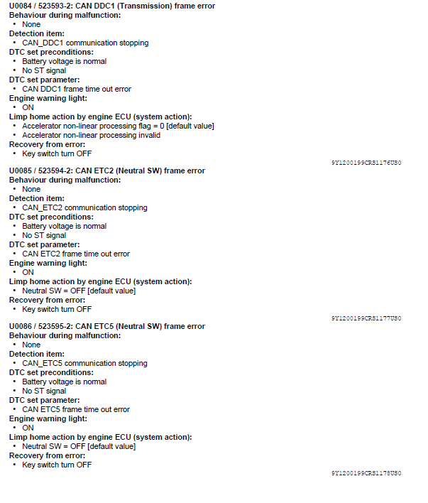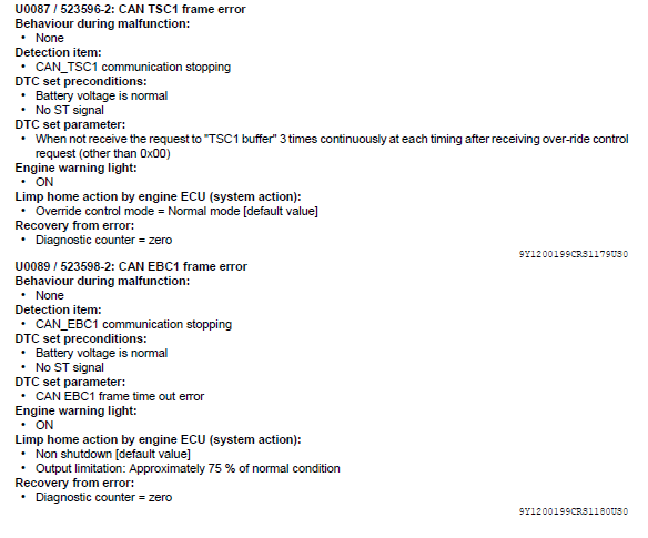 Kubota DTC U0081 SPN 523548 FMI 2 / U0082 SPN 523591 FMI 2 / U0083 SPN 523592 FMI 2 / U0084 SPN 523593 FMI 2 / U0085 SPN 523594 FMI 2 / U0086 SPN 523595 FMI 2 / U0087 SPN 523596 FMI 2 / U0089 SPN 523598 FMI 2