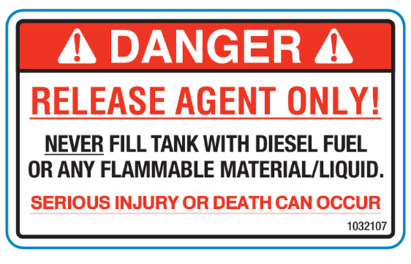Decal is installed on the solvent tank top left of the fill cap .